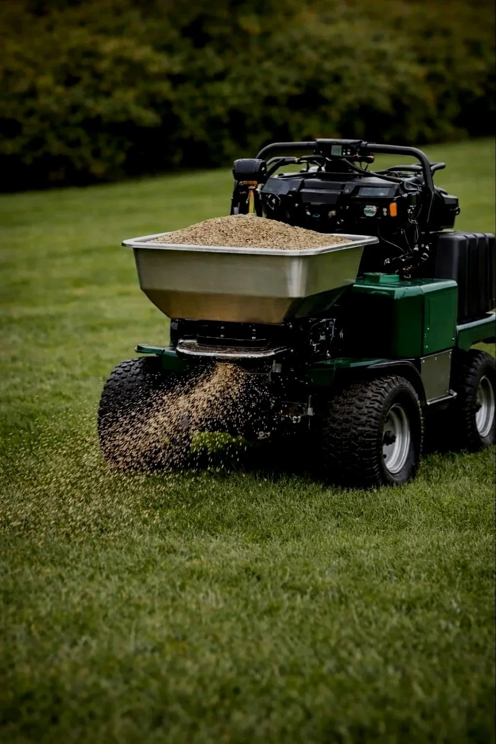 At this stage of the season, slow-release fertilizer and essential micronutrients are applied to support plant health and enhance overall lawn color.